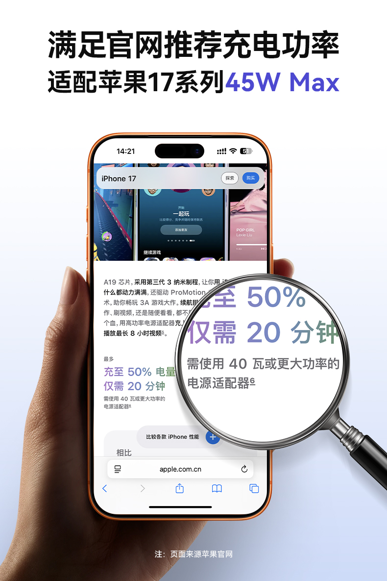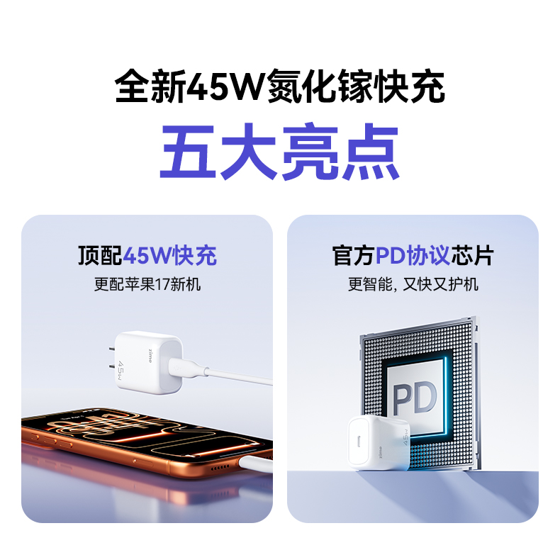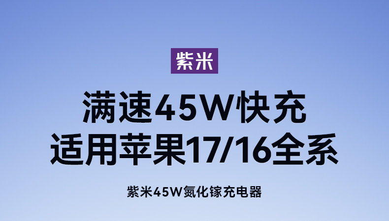 紫米【苹果8-17首选】PD45W氨化镓iPhone17ProMax/16/15充电器Type-C30W快充数据线套装苹果17充电